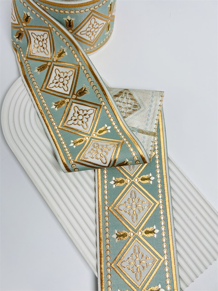 Жаккардовые ленты — гармонично сочетаются с любыми тканями, добавляя им изысканности и элегантности. Эти ленты долговечны и устойчивы к износу, что делает их отличным выбором для украшения вашего дома.